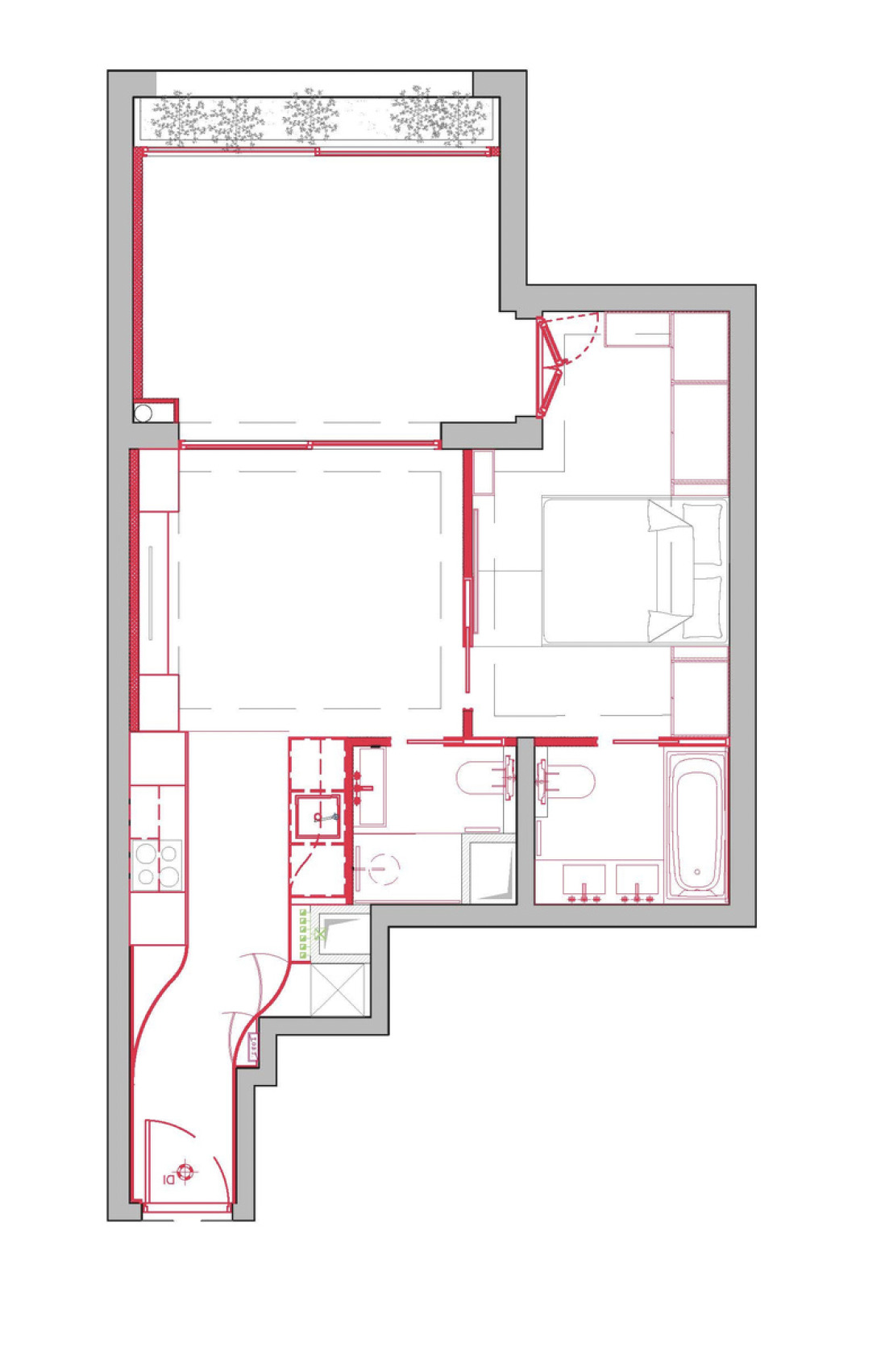 Possibility to create a second bedroom in the living part and transformed the apartment for a 2 bedroom one.
