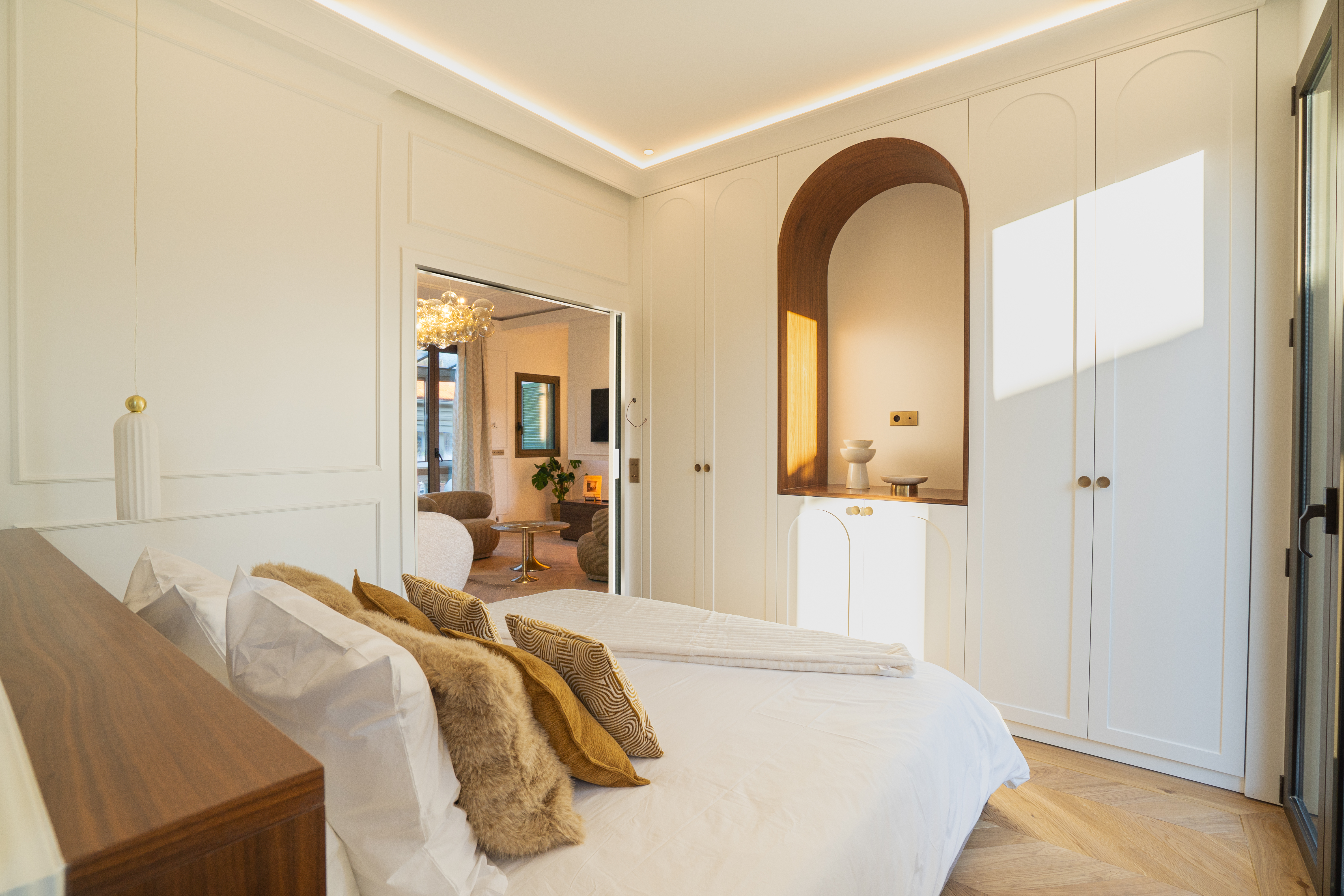 La partie nuit comprend deux chambres, chacune avec sa salle de bains ou salle de douches privative, et donnant accès à deux agréables terrasses, dont une véranda offrant un espace supplémentaire baigné de