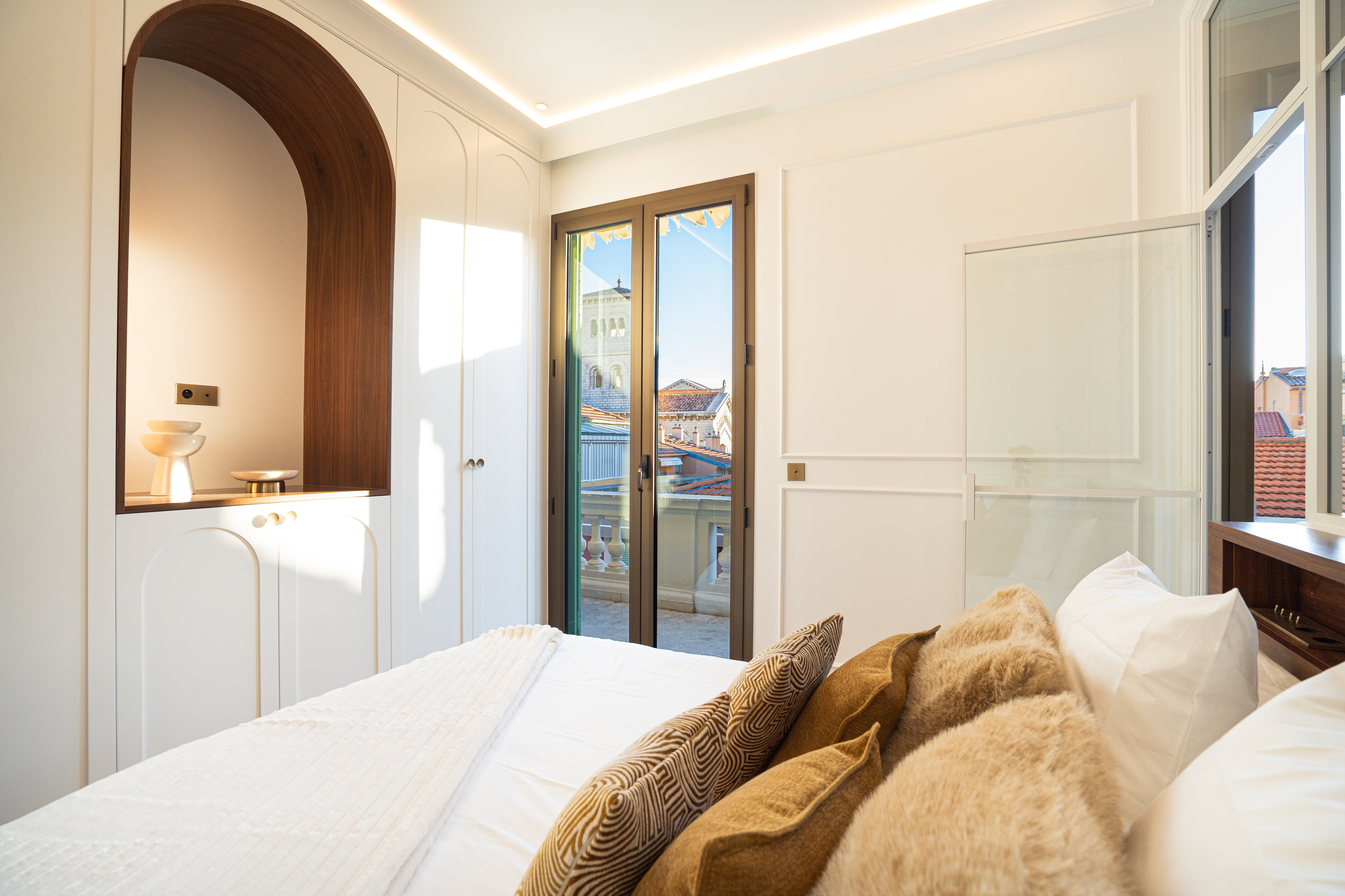 Entre la Place du Palais et la Mairie, cet appartement totalement rénové séduit par son authenticité et son emplacement exceptionnel, au sein du quartier historique du Rocher.